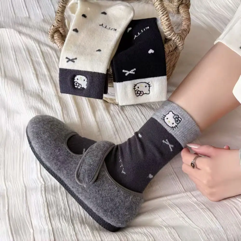 112 reviews for Cute Cat Embroidery Wool Mid-Calf Socks