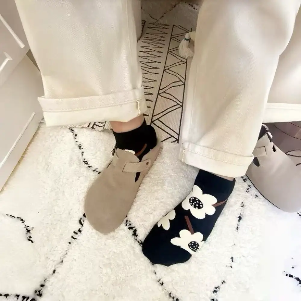 I’m a stay-at-home mom, and these socks are my new favorite thing. They’re soft enough to wear around the house all day, but cute enough to run errands in. The floral pattern is so cheerful, and the ribbed cuffs stay in place. I can chase my kids around the park, clean the house, and make dinner, and my feet still feel comfortable. They wash up really well too—no fading, no pilling. These are a total lifesaver for busy moms!