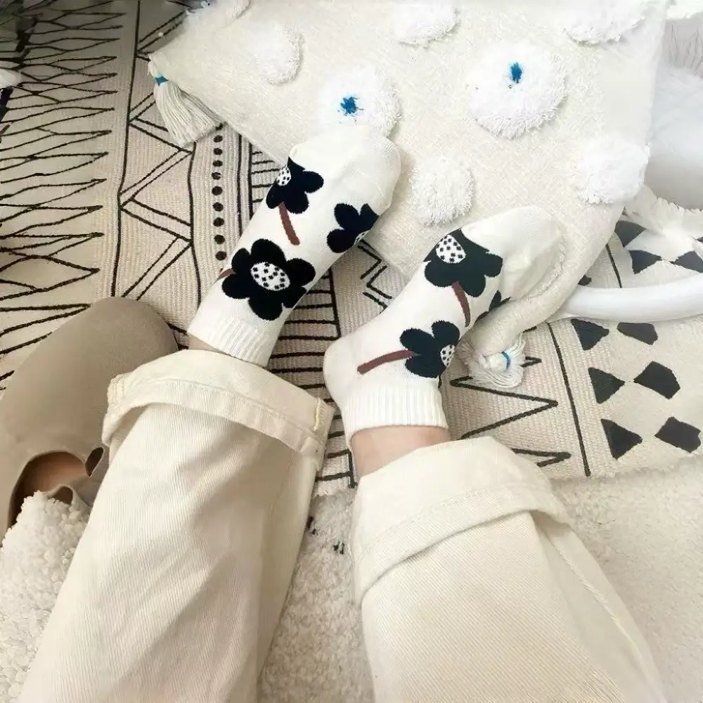 These socks are a must-have for anyone who loves cute, practical basics. The black flower pattern is so eye-catching, but not too loud—perfect for adding a little personality to your everyday look. I wear them with my white jeans and a simple tee, and they instantly elevate the outfit. The cotton is incredibly soft, and the seamless toe means I can wear them all day without discomfort. I’ve already bought three pairs and plan to get more for my sisters—they’re the best gift for any fashion lover!