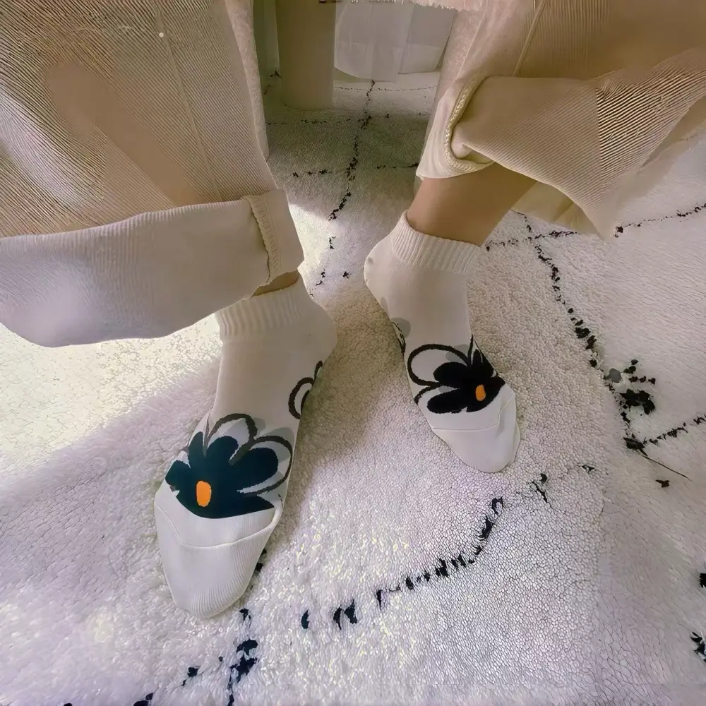 I bought these socks as a little treat for myself, and they’ve quickly become my go-to for lazy Sundays and coffee runs. The ribbed cuffs stay in place without digging into my ankles, which is a huge plus for someone who hates slipping socks. The floral pattern is so charming—reminds me of springtime walks in the park. I even got a compliment from a barista on them! They’re soft, well-made, and the perfect length for cropped jeans. I’ll be stocking up on more colors soon.