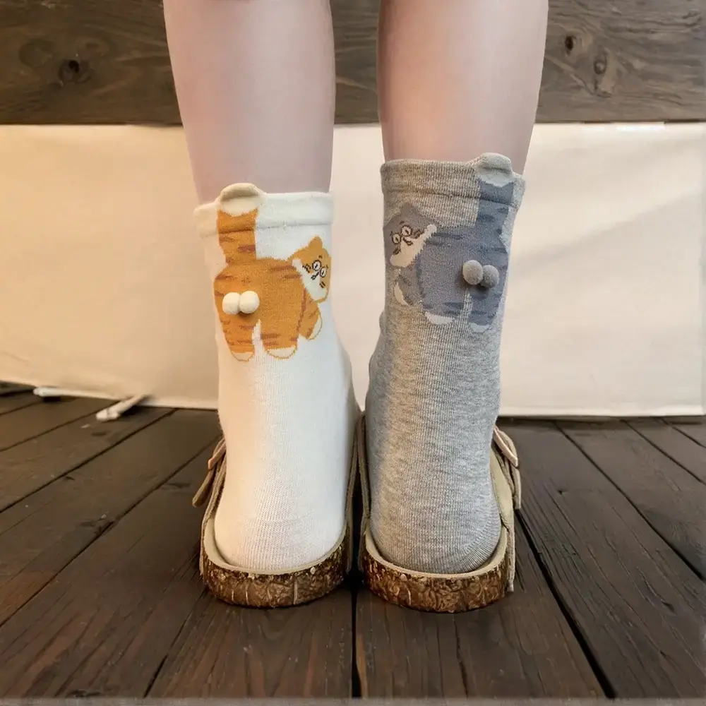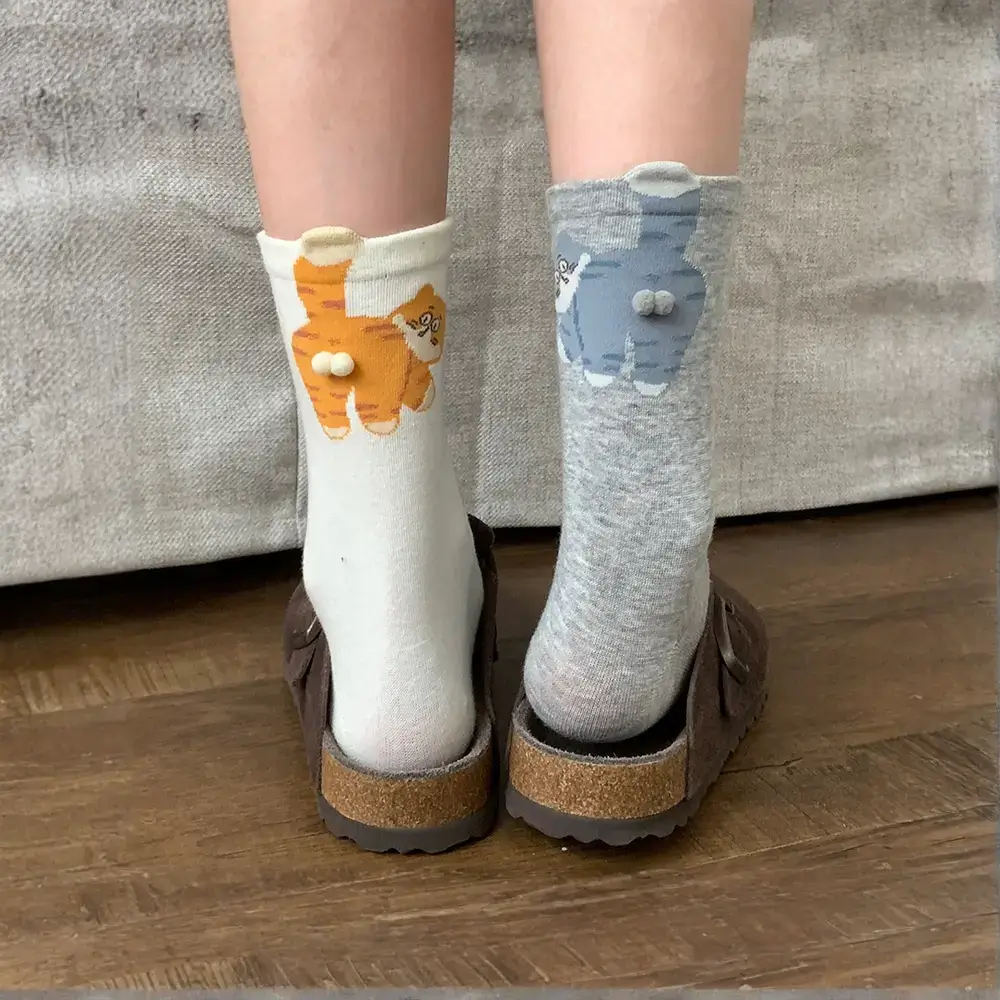 Egg Cat Cartoon Mid-Calf Cotton Socks