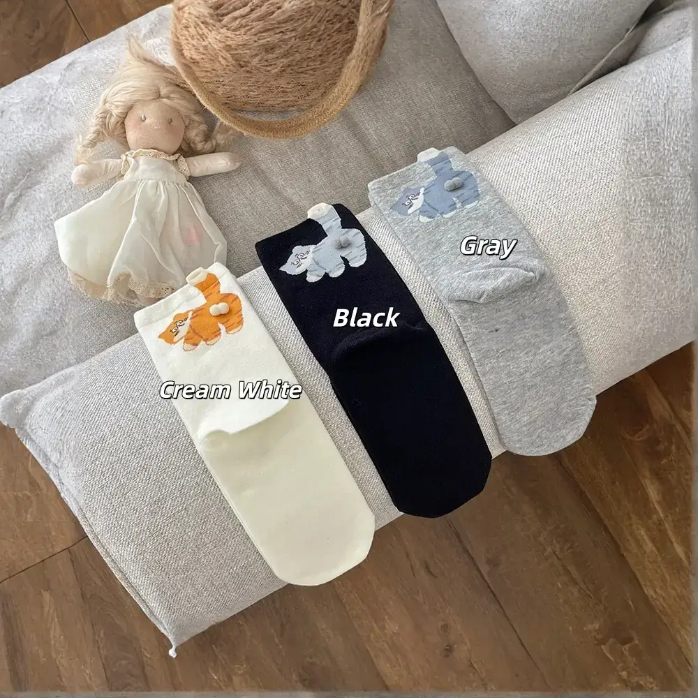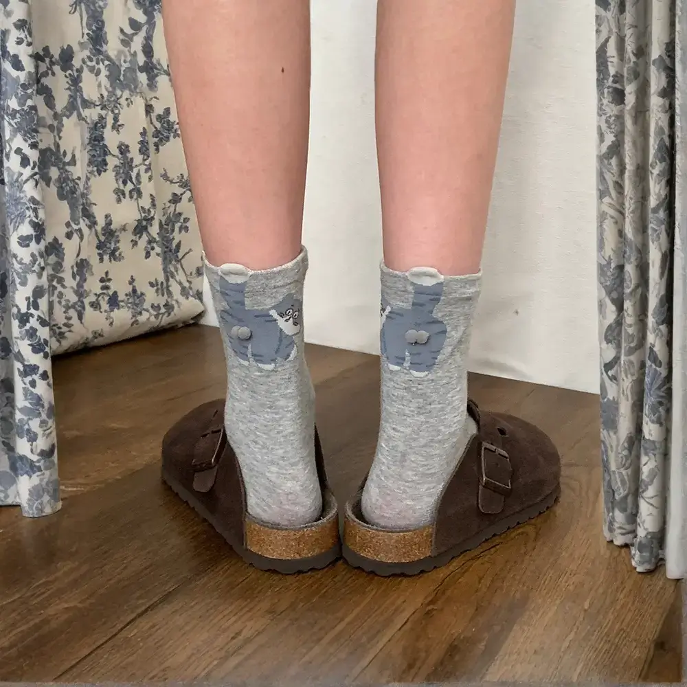 Cute Cat Embroidery Wool Mid-Calf Socks
