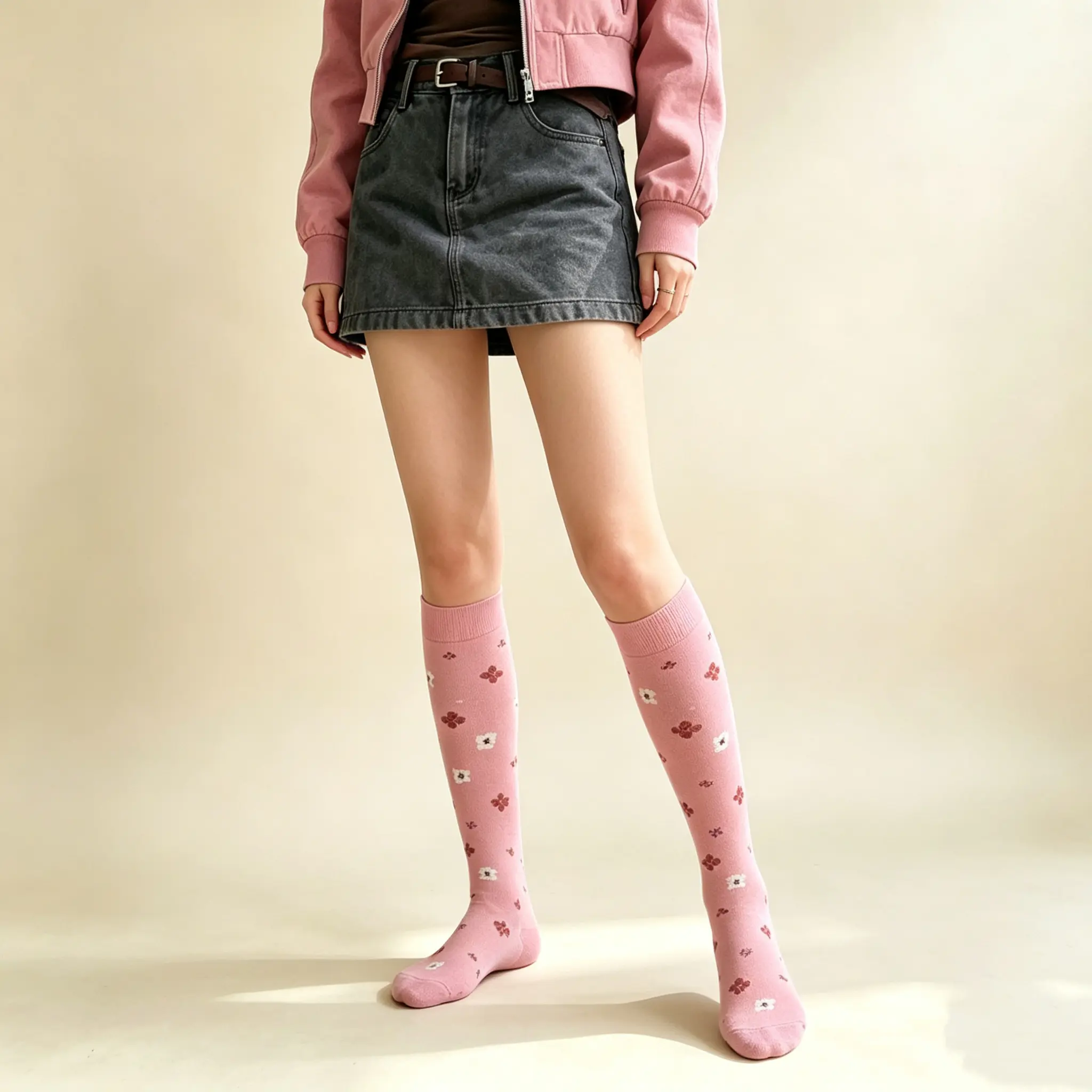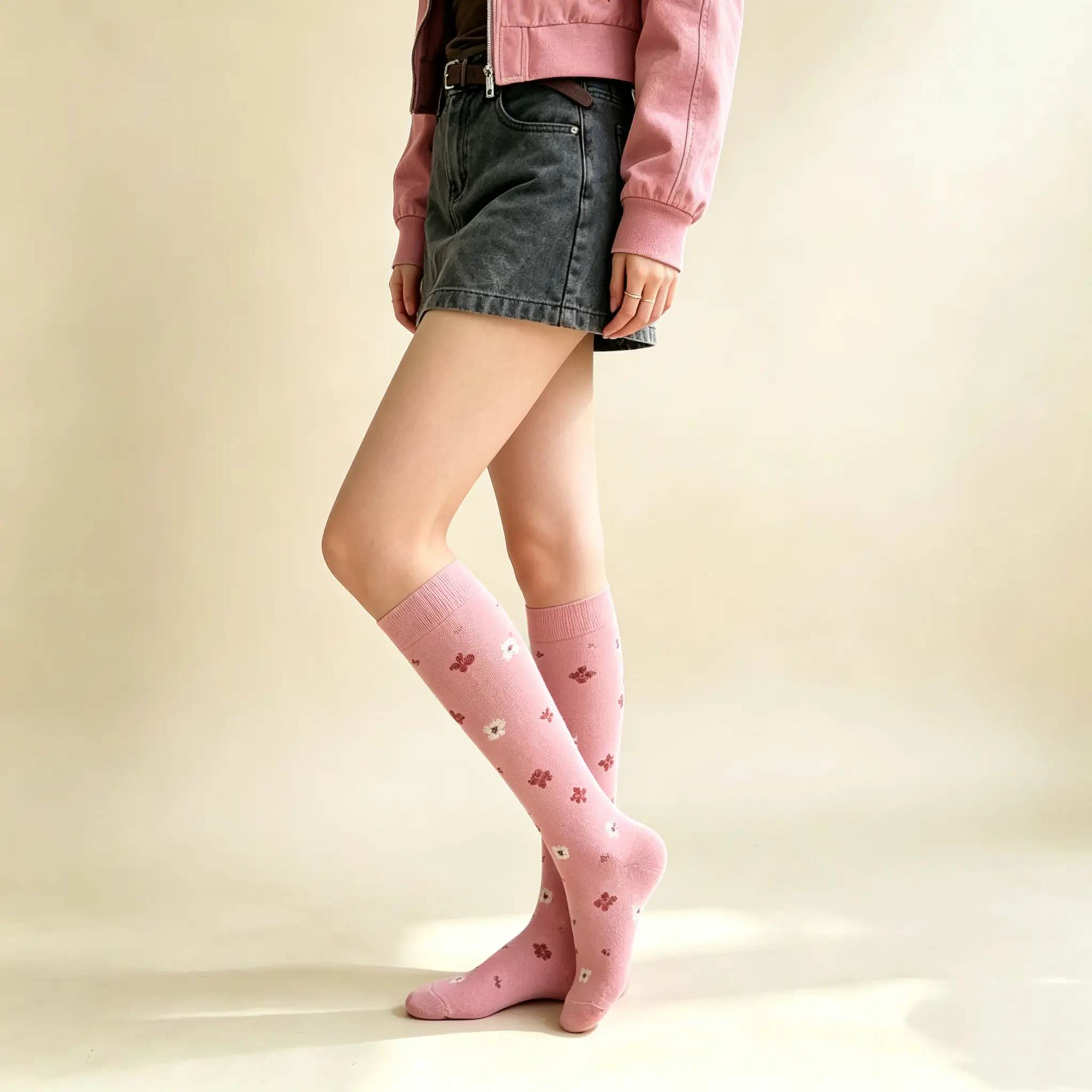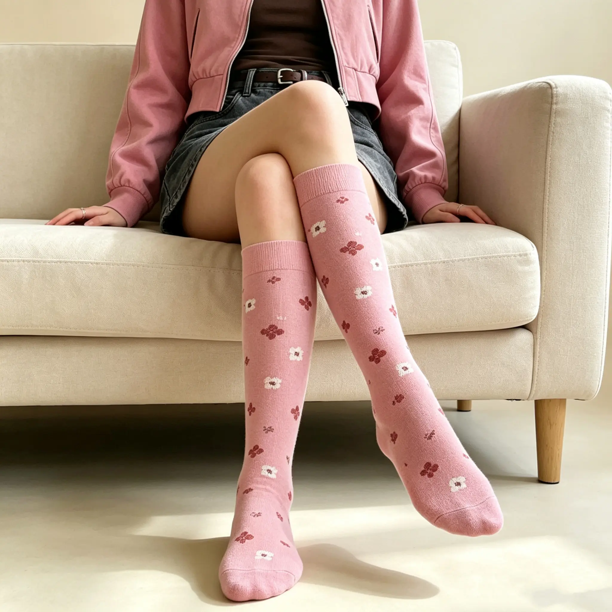As someone with sensitive skin, I’m always picky about what I wear against my legs. These socks are amazing—they’re made with such soft, hypoallergenic fabric that doesn’t irritate my skin at all. The pink is a soft, gentle shade, and the flowers are so dainty. The only tiny complaint is that the top band is a bit tight if I wear them for more than 8 hours, but for a day out, they’re totally comfortable.