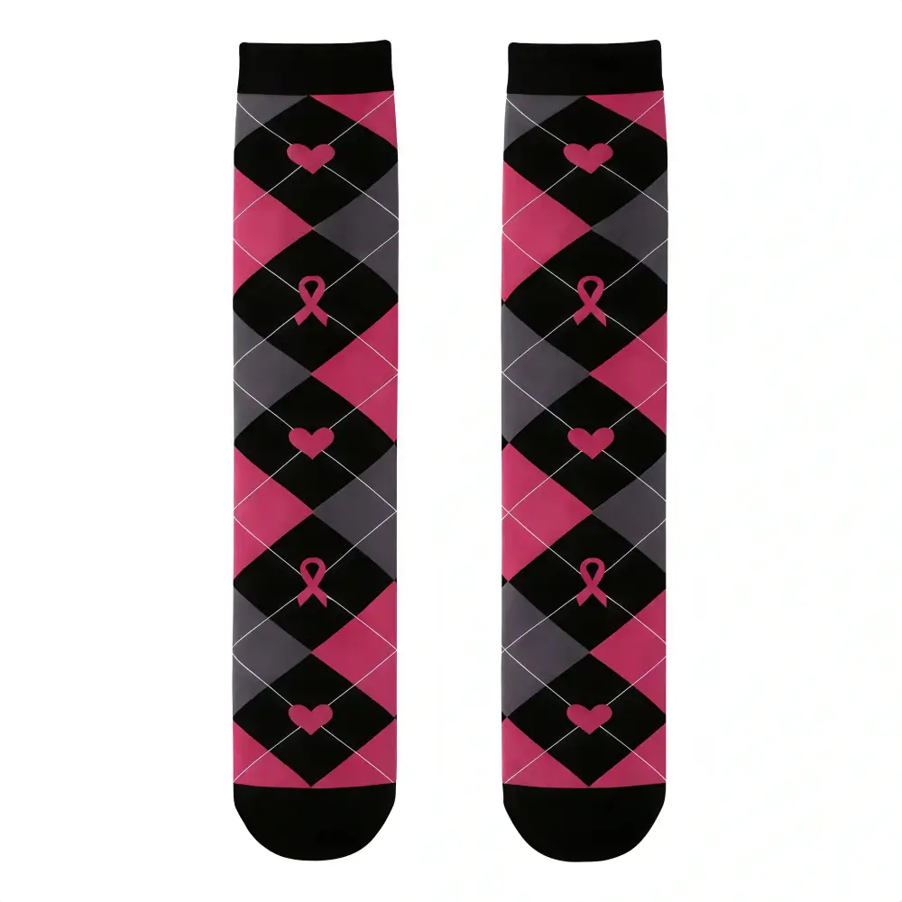 These socks are perfect for my retro-inspired outfits! The argyle pattern is so 90s, and the pink ribbons add a modern, meaningful touch.