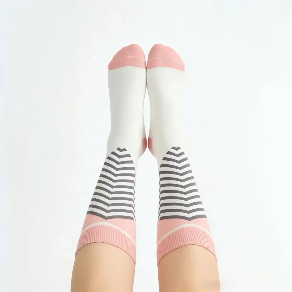 These socks are amazing for travel! I recently wore them on a 7-hour flight, and my legs didn’t swell at all, which never happens to me. The compression is gentle but effective, the material is breathable so my feet didn’t get sweaty, and the cute pattern made me feel put-together even in comfy travel clothes. They’re lightweight enough to pack easily and versatile enough to wear with jeans, leggings, or boots. I’ll never travel without these again.