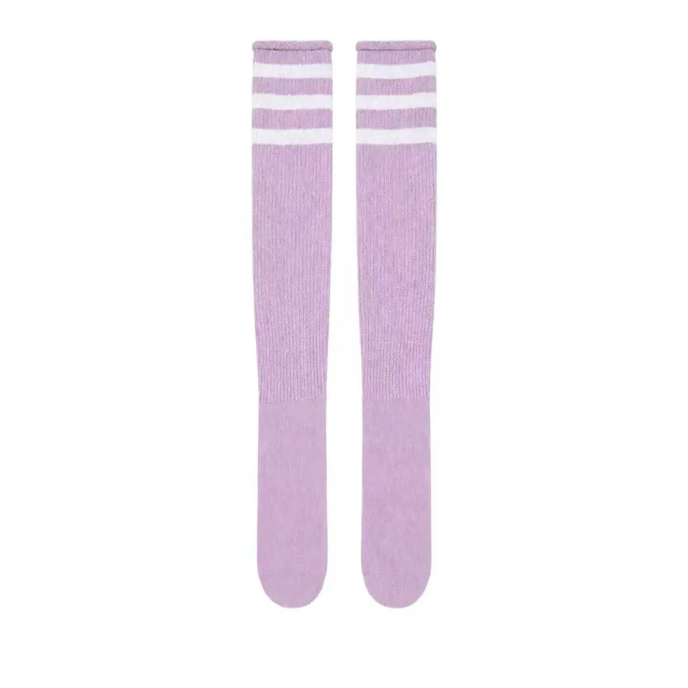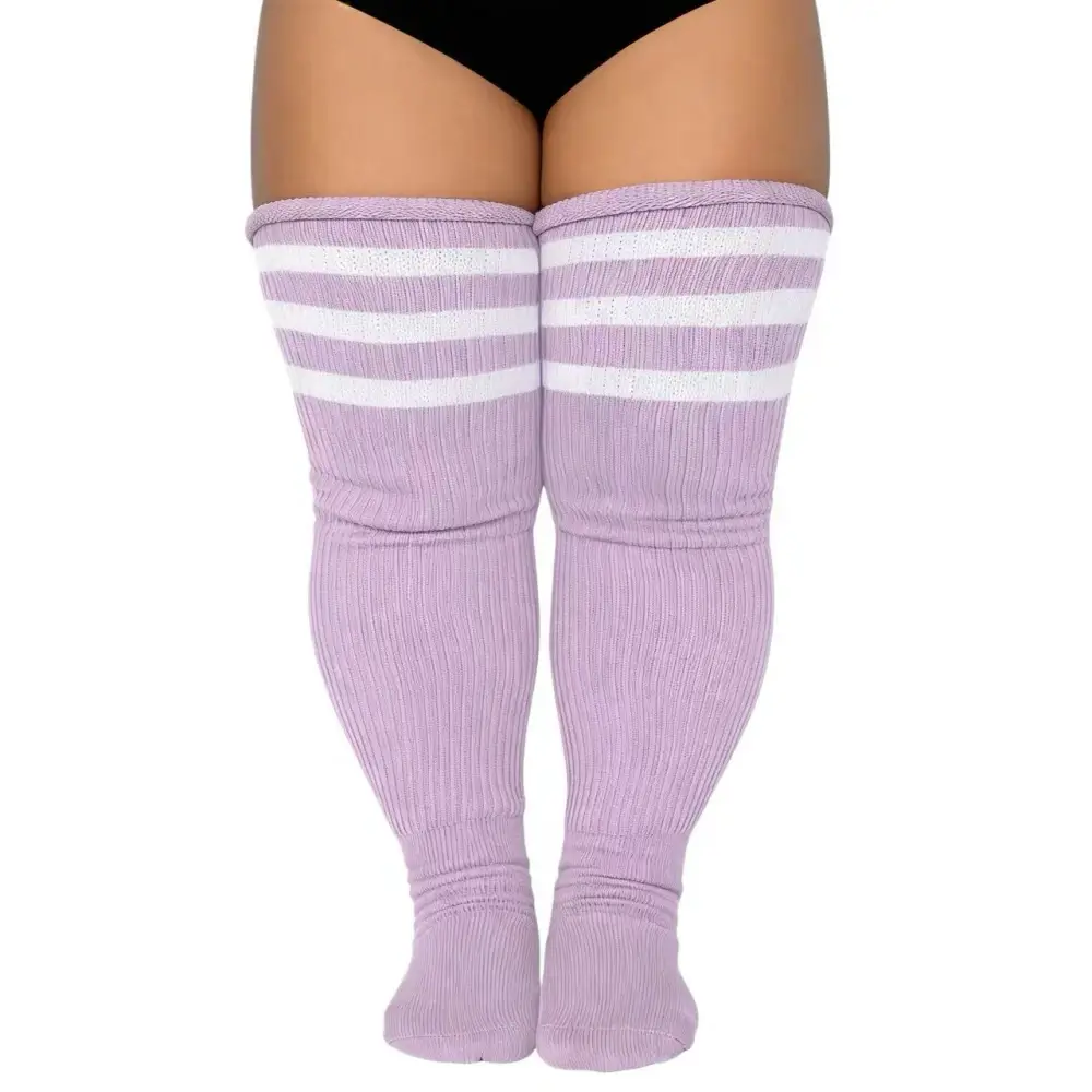 I’ve been searching for decent knee highs for ages, and these hit the mark! The lavender hue with the white stripes is so flattering; it makes my legs look miles long. Perfect for wearing under dresses or with my casual sneakers. They’re super soft and stretchy—no tight, digging elastic here. I have larger calves, and they fit like a dream without leaving marks. Worth every penny!