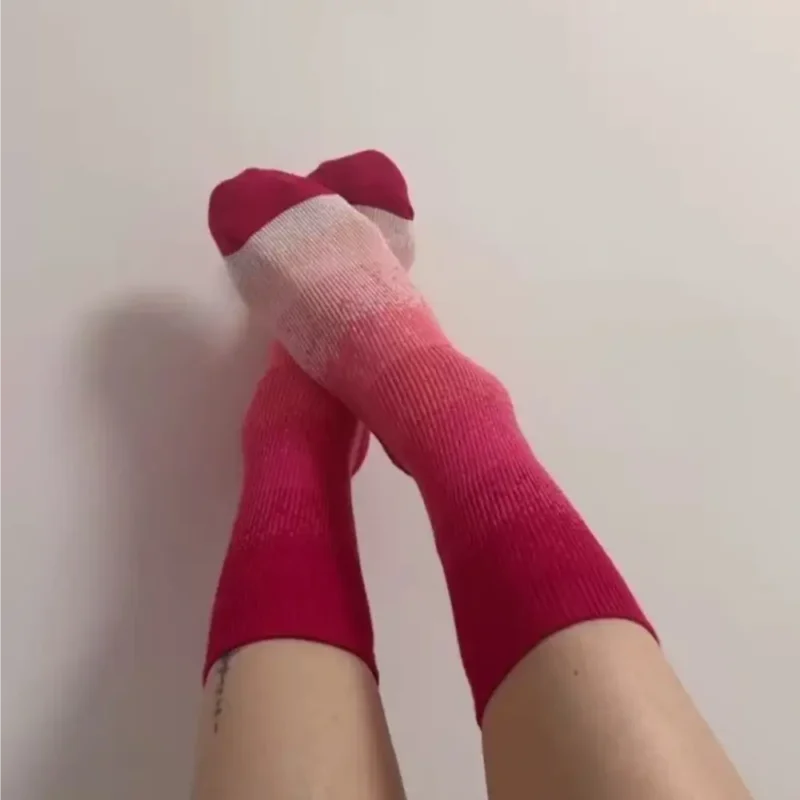 Obsessed with these gradient socks! The pink-to-deep magenta fade is so dreamy—perfect for pairing with my chunky boots and mini dresses. The ribbed texture is stretchy but stays in place all day, no slipping down my calves. I’ve gotten so many compliments on how they elevate my casual grunge looks. They’re soft, breathable, and the color payoff is even better in person. Total wardrobe staple!