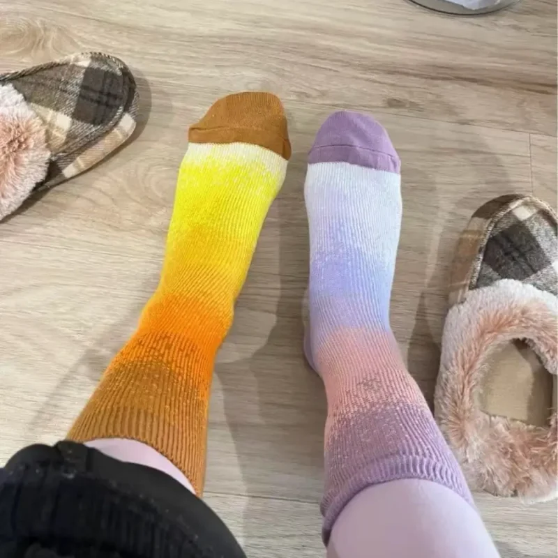 I can’t stop reaching for these gradient socks! The yellow-to-orange fade is so cheerful and unique—way more fun than plain solid socks. The fabric is thick enough for chilly days but still lightweight, so my feet don’t get sweaty. I wear them with high-waisted jeans and oversized sweaters for lazy weekends, and they instantly make my loungewear feel put-together. Such a cozy, stylish pick-me-up!