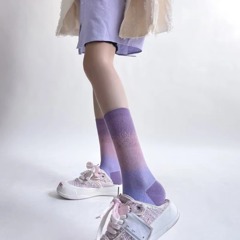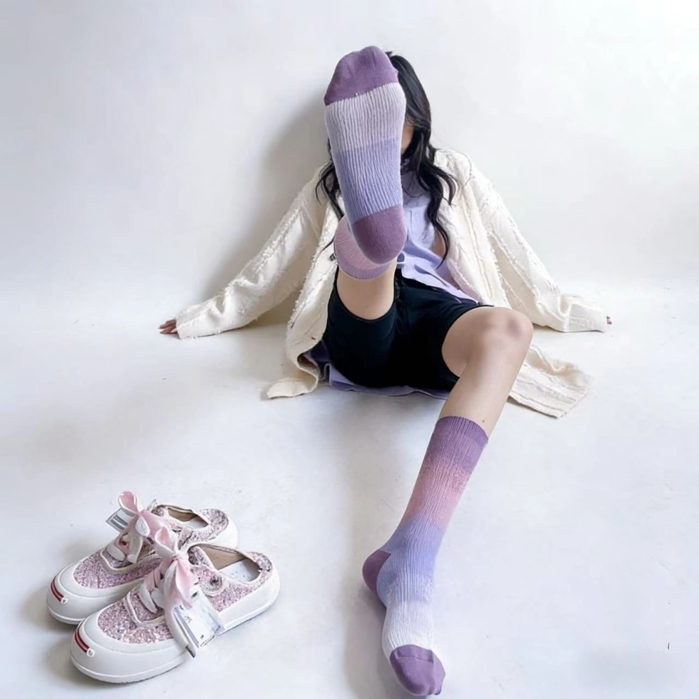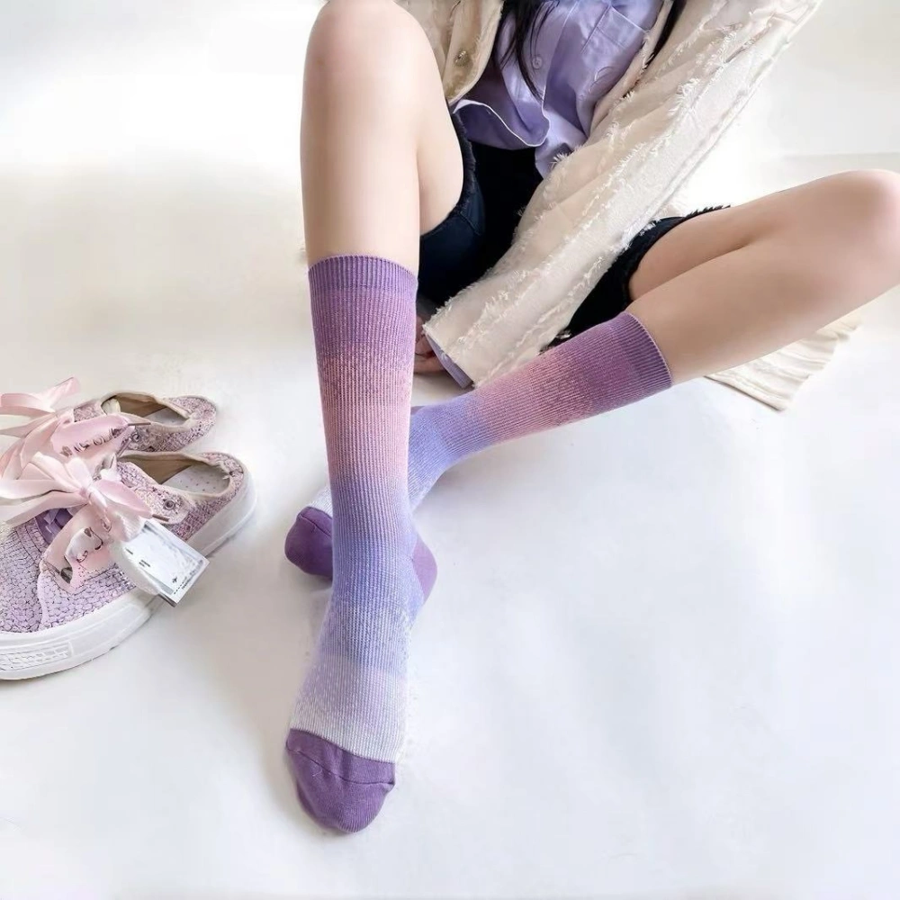 These socks are a game-changer for my fall outfits! I picked the purple-pink gradient pair, and it’s the softest, most romantic hue ever. The seamless knit feels gentle on my skin, and the mid-calf length adds just enough coverage to keep me warm without looking bulky. I love wearing them with midi skirts and ankle boots—they make my legs look longer and my outfits feel so cohesive. 10/10 recommend!