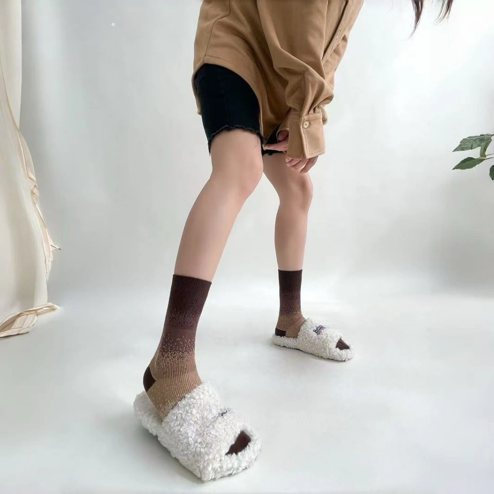 The brown-beige gradient socks are my new go-to for cozy days at home! The earthy tones are so warm and grounding, and the soft knit feels like a hug for my feet. I wear them with fuzzy slippers and oversized hoodies, and they keep my toes toasty without overheating. The elastic cuff is snug but not tight, so it doesn’t leave marks on my legs. Such a simple, lovely way to add comfort to my routine!