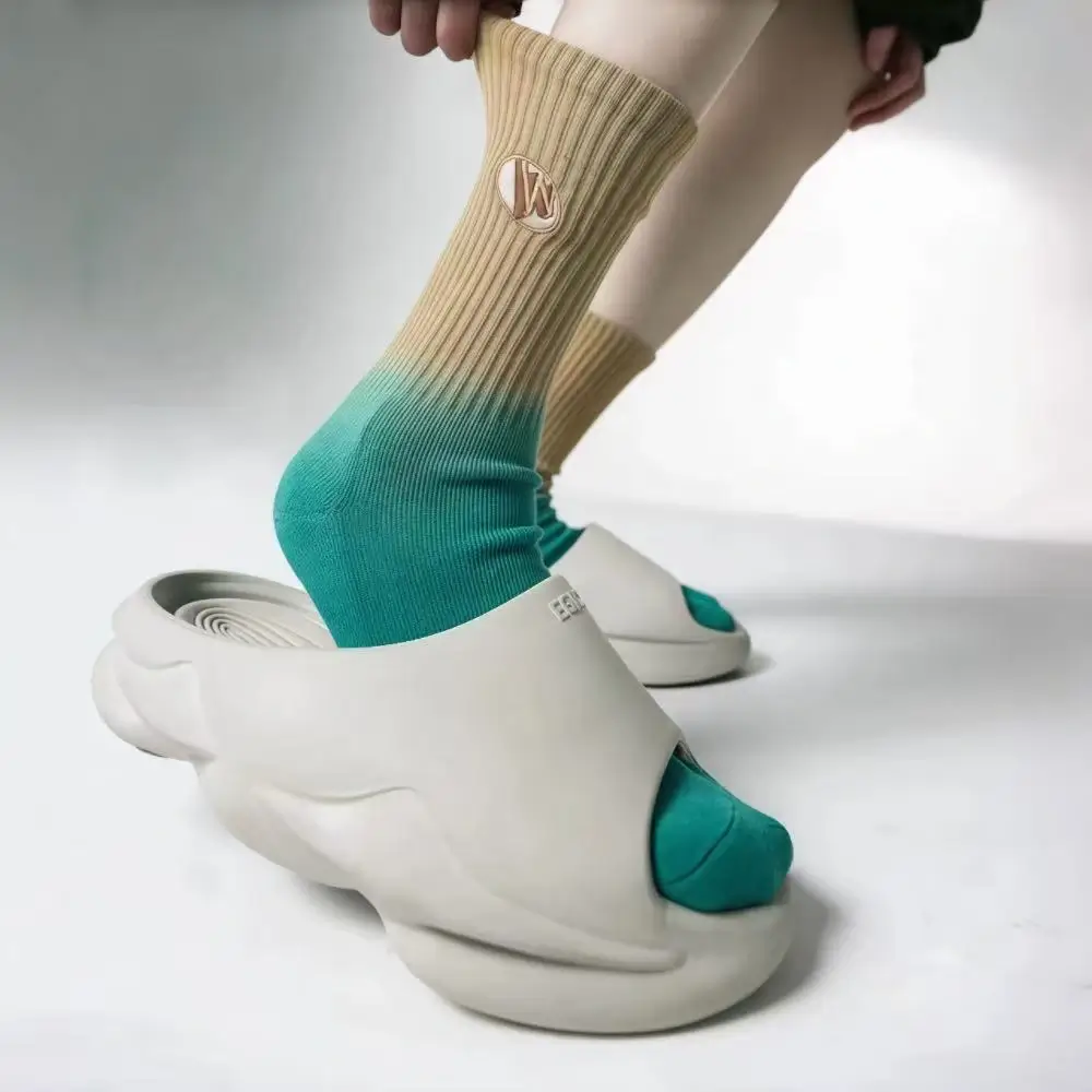 Designed with modern aesthetics in mind, these socks feature color-blocking, gradient tones, and bold lettering/number graphics, making them easy to style with everything from sneakers to casual outfits.