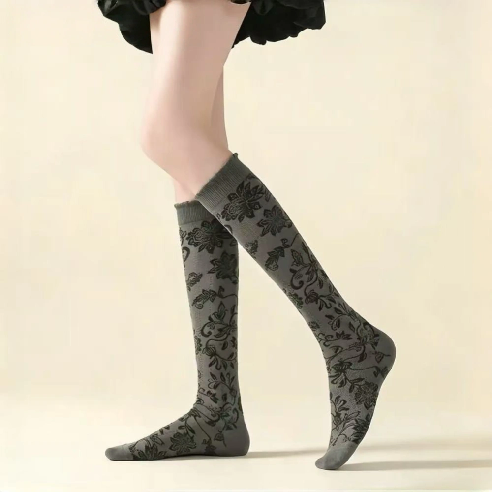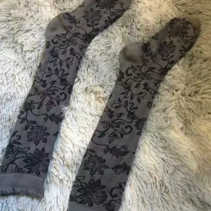 I bought these gray floral knee-highs for my grandmother who’s in assisted living and misses her garden terribly. She wears them every day, and the floral pattern reminds her of the flowers she used to grow. She says they make her feel connected to nature even though she can’t get outside. The soft knit is gentle on her legs, and they keep her warm in the facility. Best gift for an elderly loved one who needs a little piece of the garden indoors.