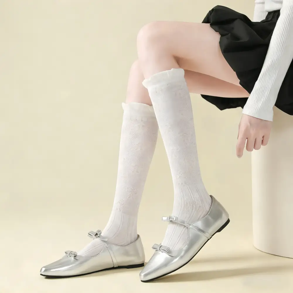 These white ruffled bow knee-highs are pure magic! I’ve always loved frilly, feminine pieces, and these socks check every box. The delicate bow pattern embossed into the knit is so sweet, and the ruffled top edge adds a playful, vintage touch. I wore them to a tea party with my grandma last weekend, pairing them with a white lace dress and silver Mary Janes. She teared up when she saw me, saying I looked just like her when she was a young girl. The soft knit is incredibly comfortable, and they stayed in place all afternoon without any slipping. I’ve already ordered a second pair to wear to my cousin’s wedding next month—they’re the perfect blend of sweet and sophisticated.
